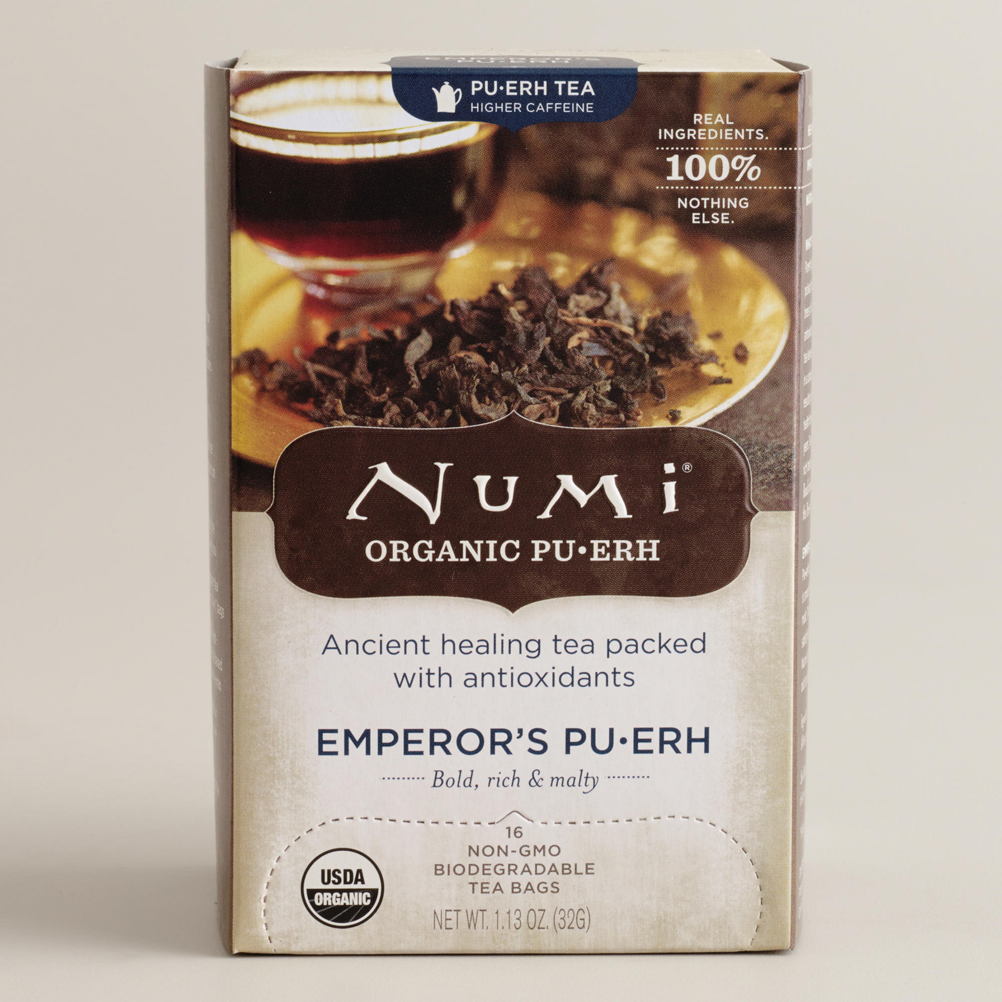 Numi is probably my favorite “bagged” tea, though if i could buy it loose leaf for less than an arm and a leg I would. They actually have an entire line of pu-erh teas that can be got at Whole Foods, etc. specialty grocers. I believe I’ve reviewed some in the past. Anyway this week they were on sale when i needed to go grocery shopping and it’s a pretty rare event (though not as a rare as Rishi which remains stalwartly bourgeois).