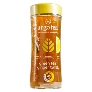 During this summer’s iced tea season you may remember I noted Argo’s Acqi Squeeze the Crown Prince of Iced Teas. So it’s little wonder than that I’ve continued to try their other flavors. Today I’m drinking Argo’s Green Tea Ginger Twist which is almost as excellent. It’s exactly like a hot ginger tea with lemon except that it’s iced, and by that i don’t mean it was brewed hot and then someone threw ice in it. It’s a well-brewed iced tea with antioxidants, actual lemon juice extract, vanilla and yes cane sugar. As you probably know by now I’m not the hugest fan of sugaring or honeying iced tea, but in this case the rest of the tea is so well brewed i can’t really fault that additive. Also, one tiny thing about Argo is the mouth of the bottle is quite a bit too large for tea, maybe even for water but it’s hardly noticeable. So 8/10? A definite recommendation.