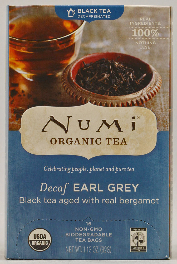 Since it’s hot tea season, I wanted to have at least one post that was dedicated to what most people probably think of as regular “hot tea”. Naturally, since practically everyone has already had things liked bagged Lipton or Twinings *shivers*, there’s not much point in reviewing those. Instead, this post will be a review of Numi‘s Decaf Earl Grey (not currently available through their web site).
