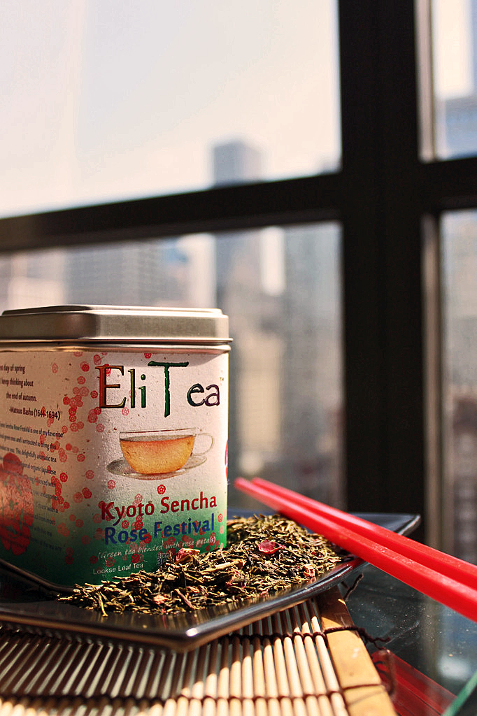 Such is definitely the case with Eli’s Kyoto Sencha Rose Festival (if it had been my invention, I probably would have called it Kyoto Bara Matsuri Sencha). The luscious flavor of a hand-raised English red rose is given new life when encapsulated in this vibrant sencha. The scent of the raw tea is one of the most enticing I’ve ever encountered. I was very pleased to find the… hagaromo of delicate rose translated well through brewing. The texture of the sencha is thickly effuscent of chlorophyll. You can almost taste the veins of the leaf (rare for a Japanese Green since they usually de-vein their leaf before processing to create a more homogenous taste). It’s kind of magical.