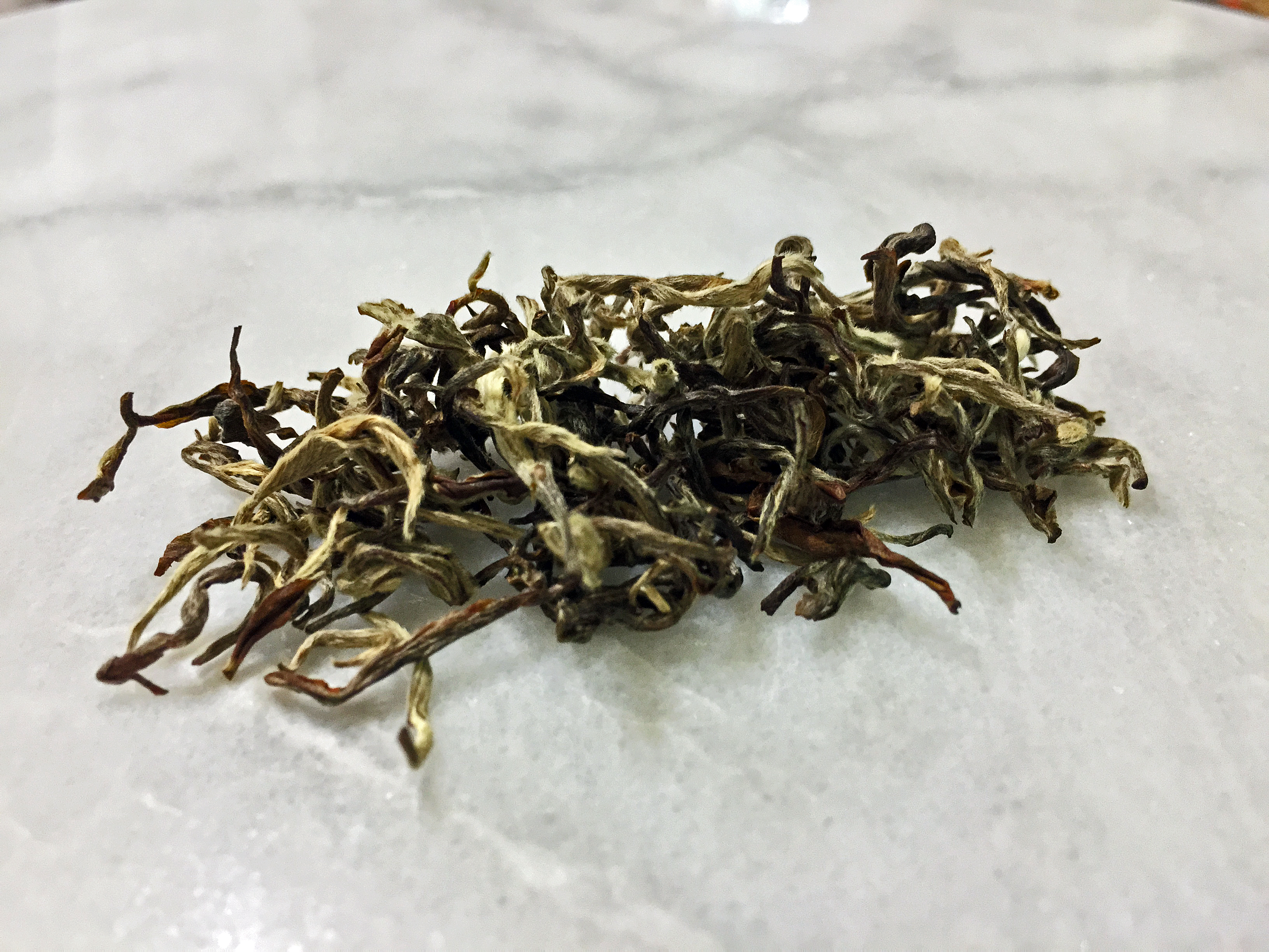 Amazingly, this White tea brews out into the aroma of a Nepal tippy golden Black. I suppose it’s not all that surprising though considering it’s the exact same tea (grown in the Himalayas between 1,200 and 2,100 meters), just manufactured differently. The aroma of birch and thorny forest awaken the senses to this unique White experience.