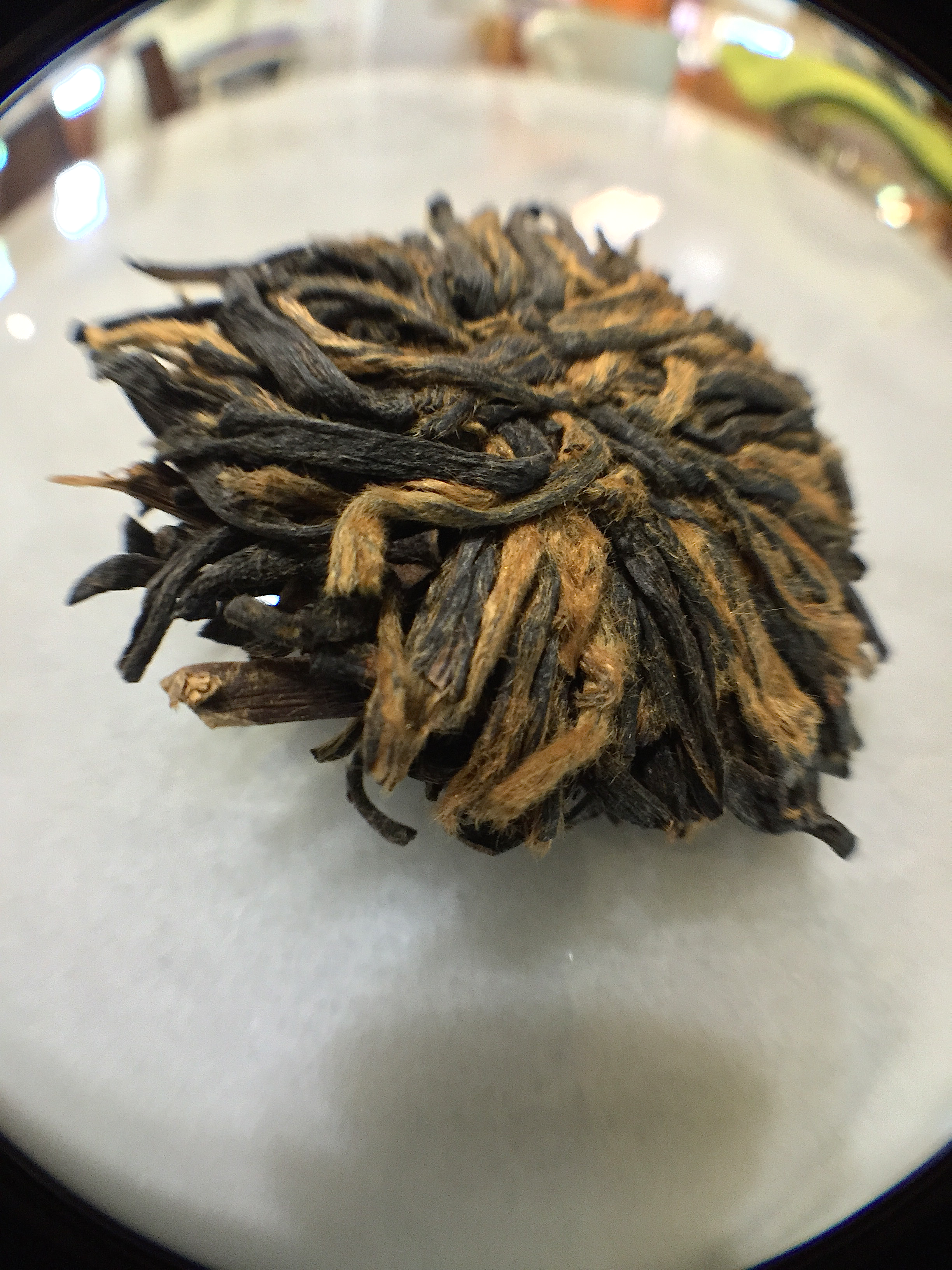 Although it’s aroma isn’t exactly bursting, this Anhuian Black does have a slight Tippy nose. Actually, in flavor though, it’s all malt and molasses. As malty and milk chocolatey as most any Yunnan Gold worth its stripes, Black Peony has a well-rounded Mao Feng pluck. Tea grit does not disappoint: Black Peony has a hot cocoa-like melty-grit. I can imagine Black Peony brewing to a bit more Tip than i was able to get through my lab setup. Black Peony also has a really inviting bright amber liquor. Even without it though, it’s obvious Black Peony is a far older and more successful (ie. drinkable) Display Tea than most. Black Peony’s major downfall arrives in its inability for its leaves to really unfurl.